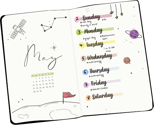 Your beautiful bullet journal. Boost creativity. Stick to your schedule with doodles, sketches and colorful notes.